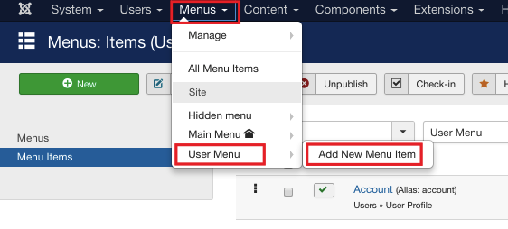 Locate Menus dropdown in the top menu of your Joomla control panel and click on it.