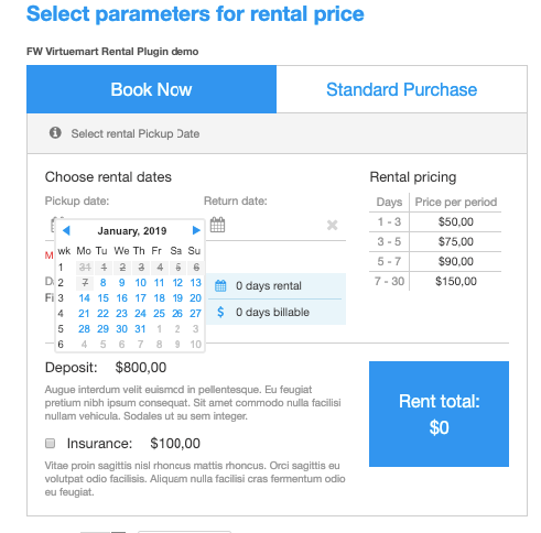 FW Virtuemart Rental – Documentation