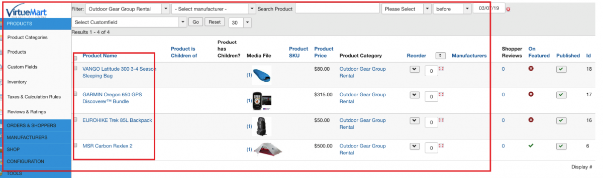 Repeat steps 1-3 to add each new product to the category. Once all products are added, your admin panel will look similar to the screenshot below: