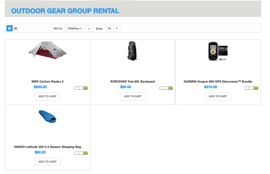 In the showcase, we have created an Outdoor gear group rental category. The overall process for creating a category is as follows: