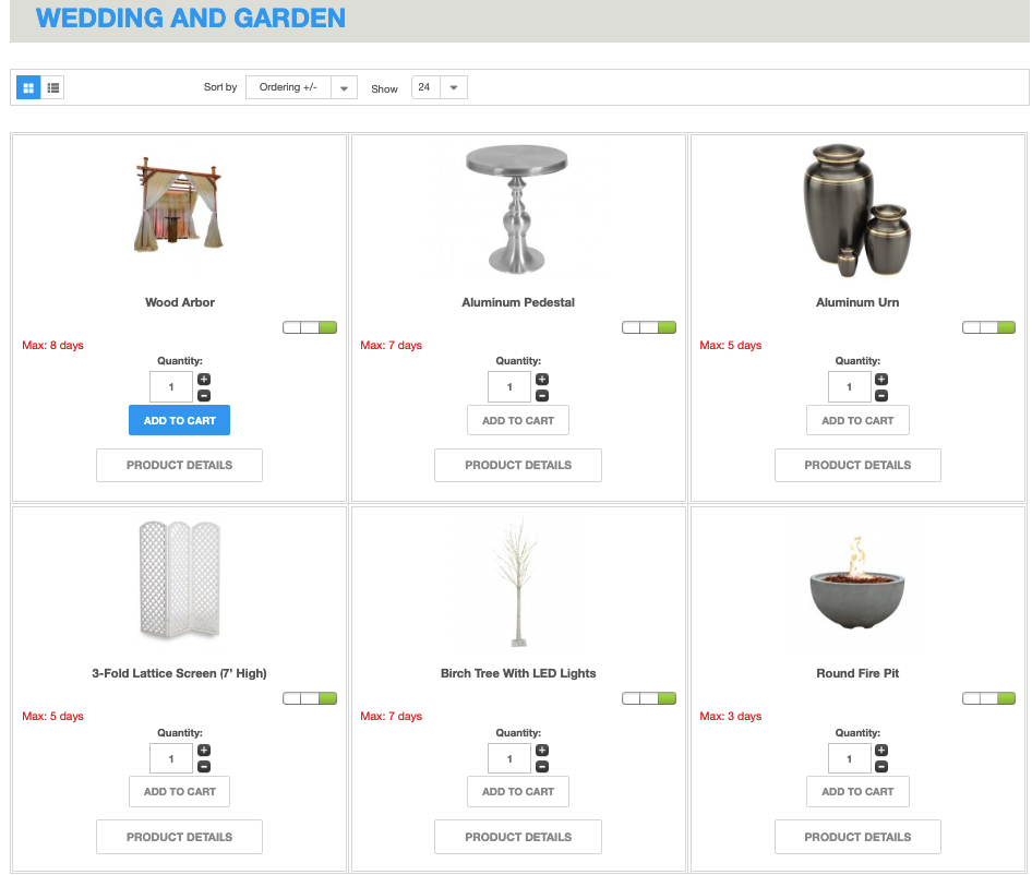 Once you’re finished configuring menu display settings, go to the front-end to see how your Party rentals are displayed.