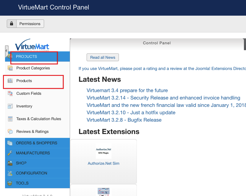 Go to the Products section of VirtueMart control panel.