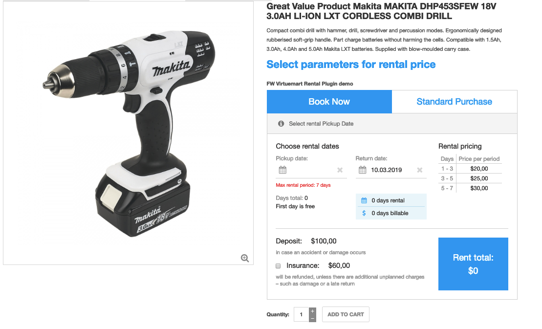 VirtueMart is a component adding e-commerce functionality to your Joomla website. In this tutorial, we will learn how to configure a product using FW VM Rental plugin via VirtueMart.